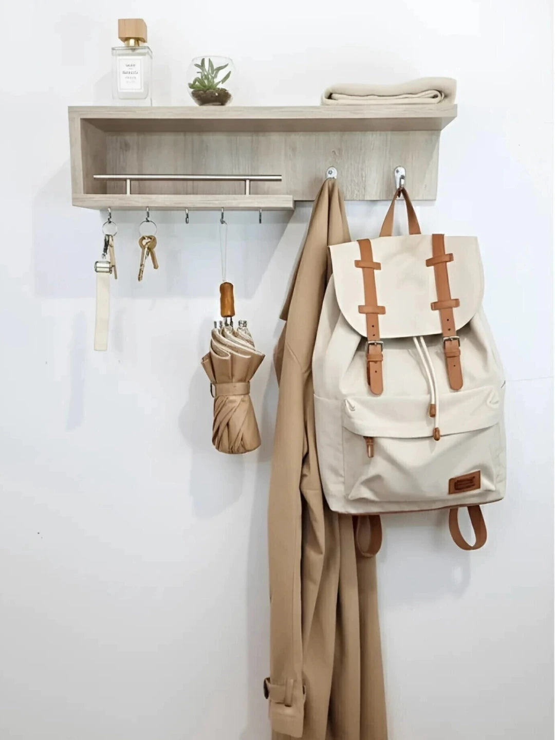 يمكنك تعليق المفاتيح، الحقائب، المعاطف، والمظلة بكل سهولة ✅